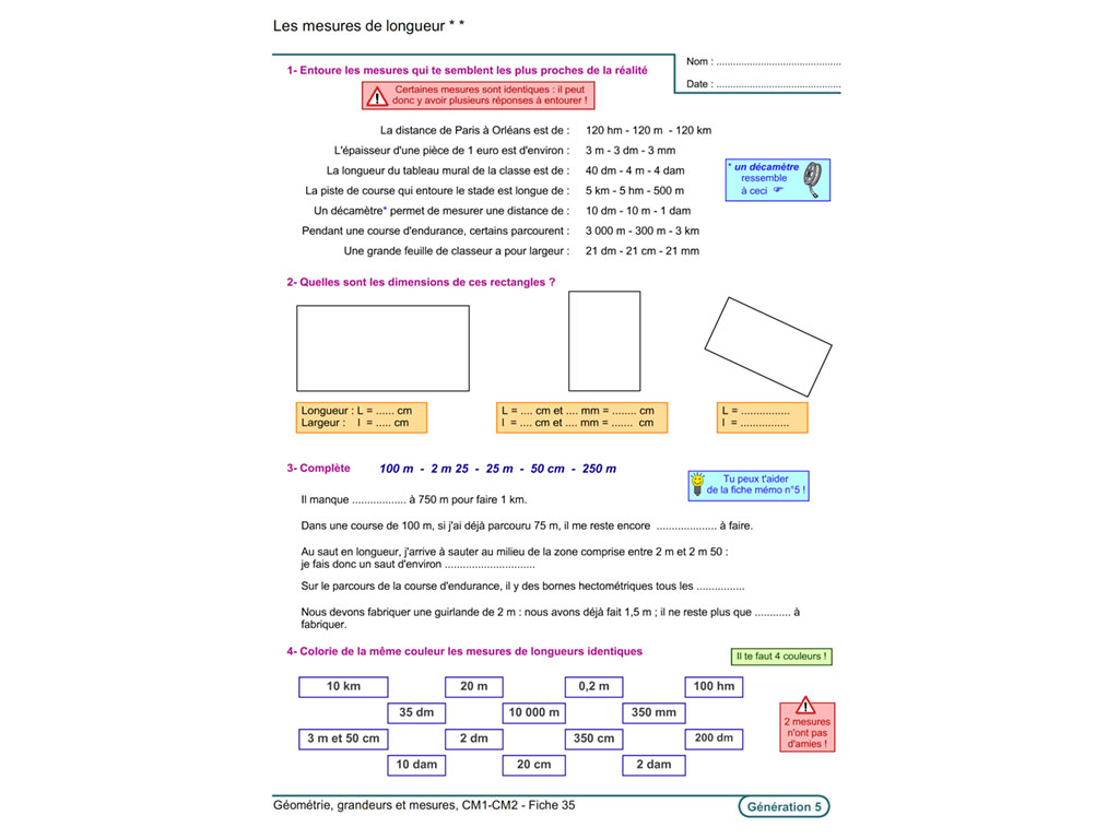 Evolu Fiches - Géométrie, grandeurs et mesures au CM1/CM2