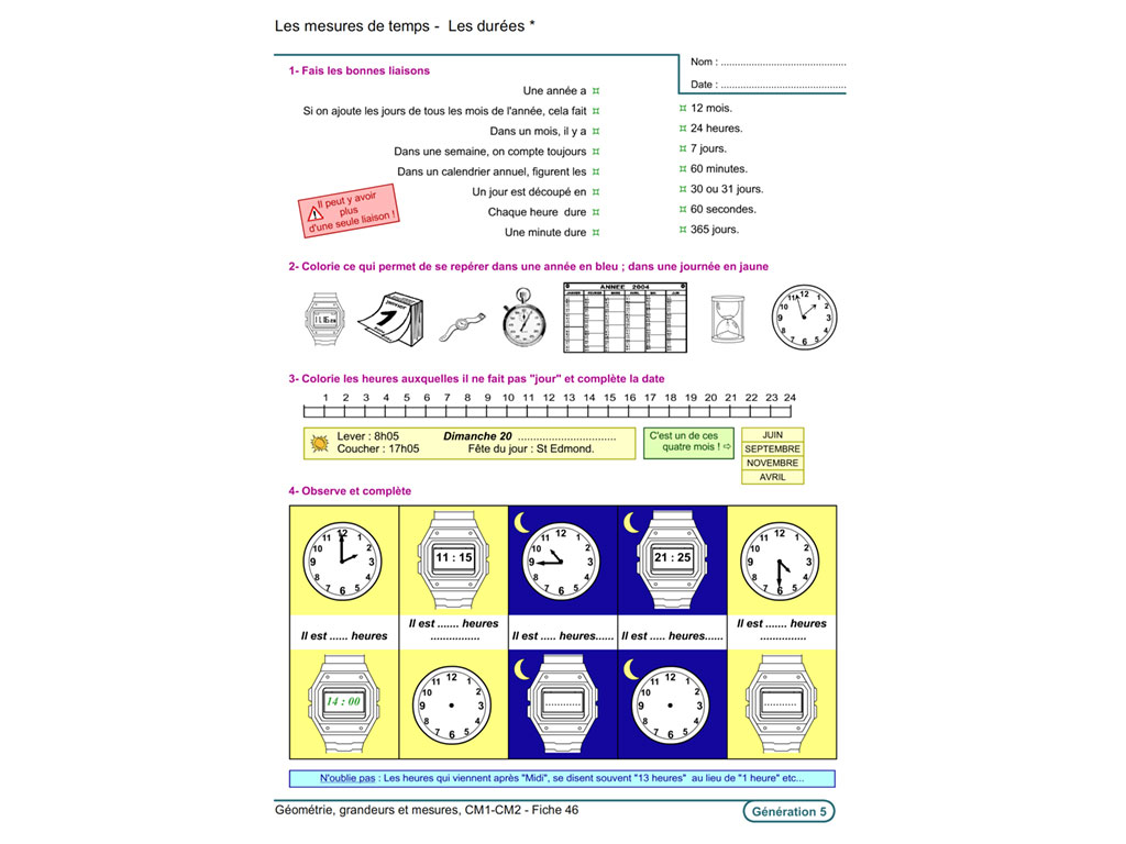 Des fiches d'exercices variés pour aborder géométrie, grandeurs et mesures au cours moyen...