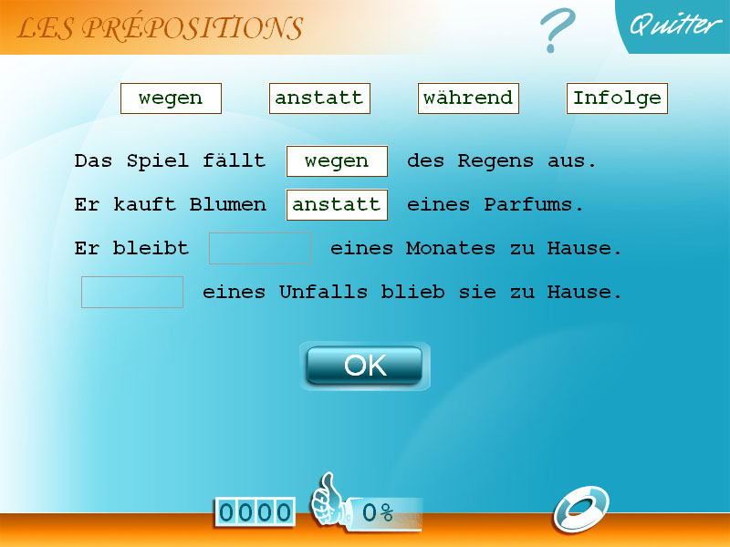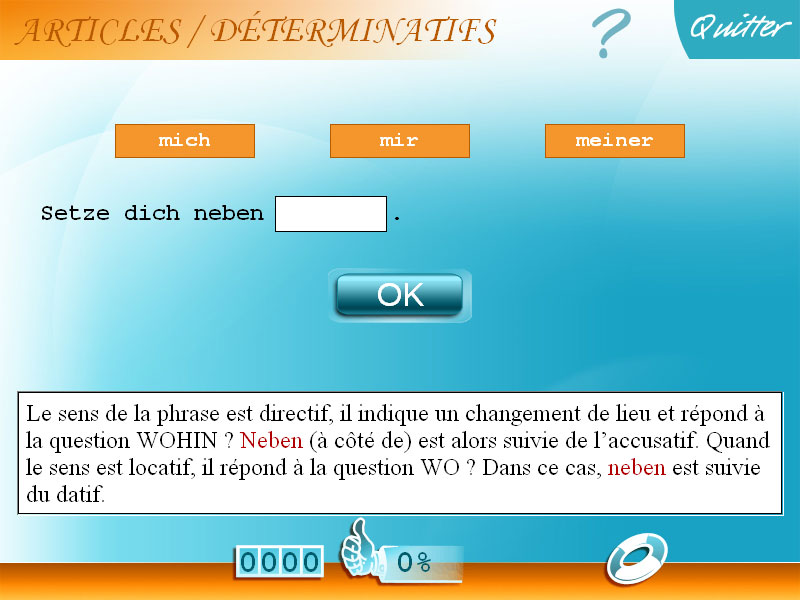 - Maitrisez un aspect important de la grammaire allemande : les déclinaisons. Apprenez à employer correctement les cas (nominatif, accusatif, datif, génitif). Écrivez les bonnes déclinaisons. Choisissez le déterminatif qui convient.