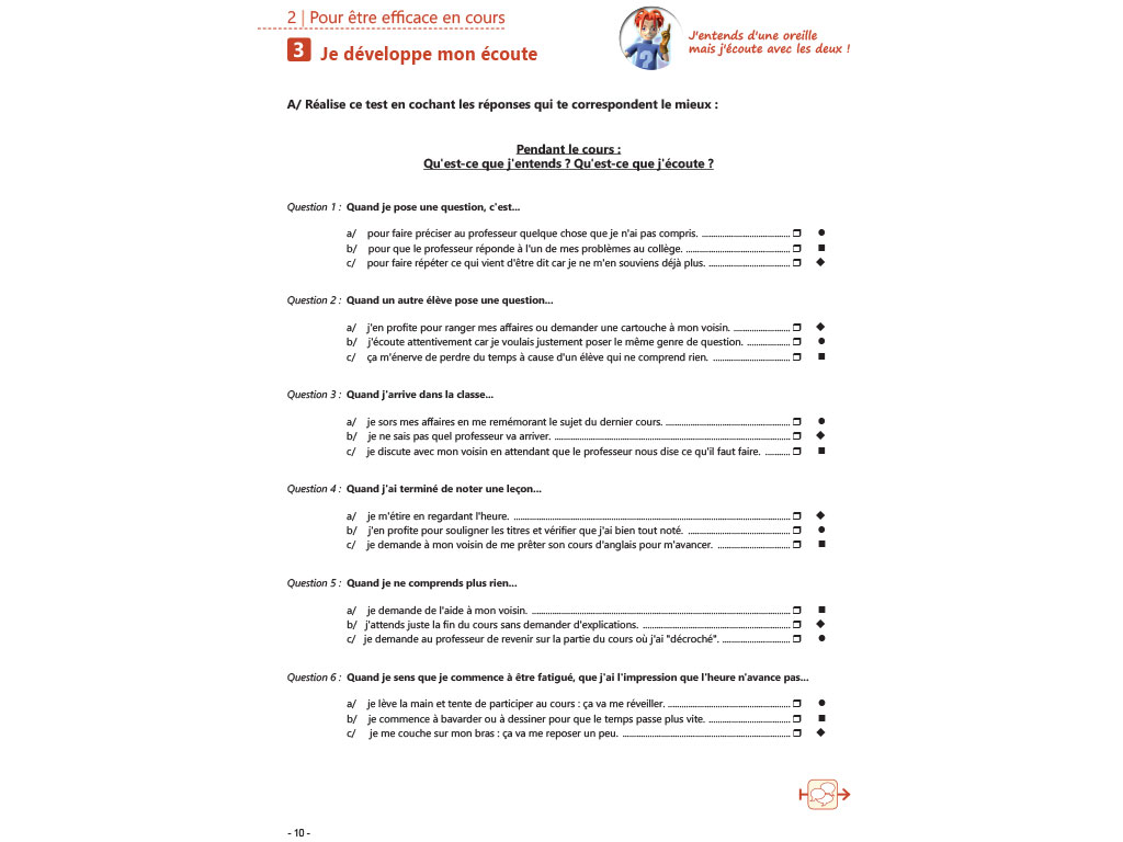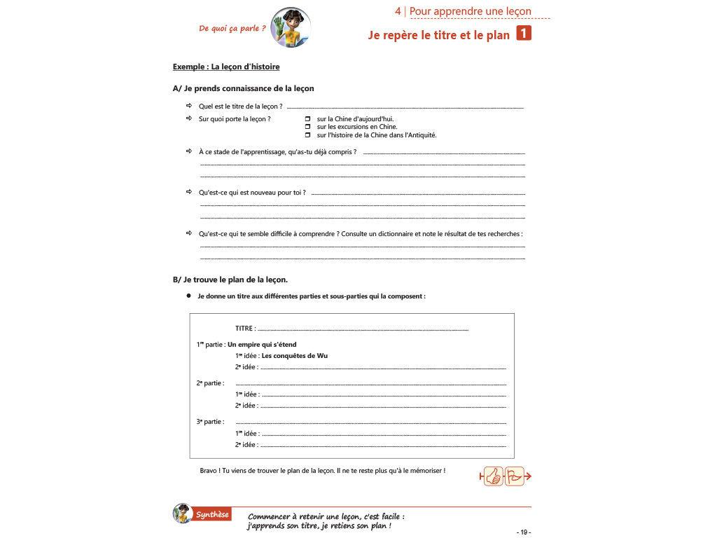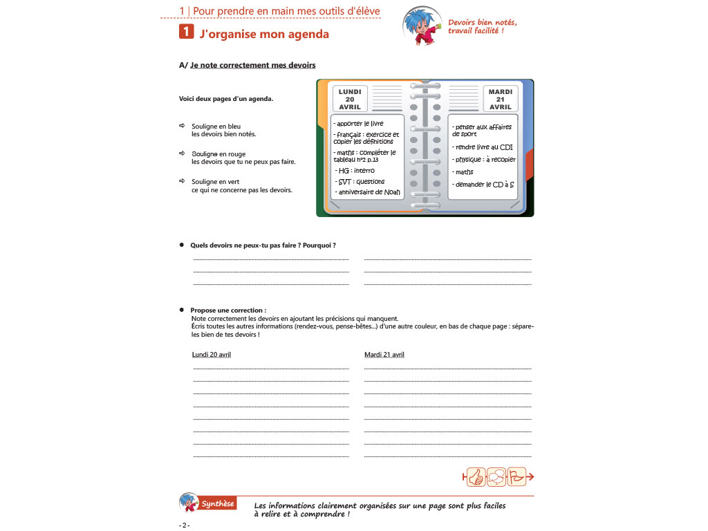 Le Cahier 1 "Développer son autonomie" vise à développer l'autonomie des élèves, leur permettant de repérer leurs difficultés et trouver des astuces et conseils :