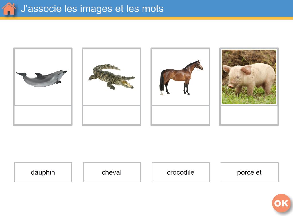 • 572 mots, images et sons pour de nombreuses activités : "je découvre", "je trie", "j'associe", etc.