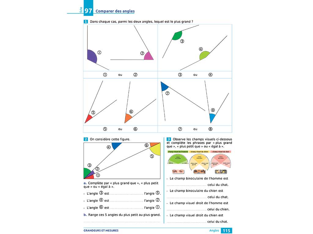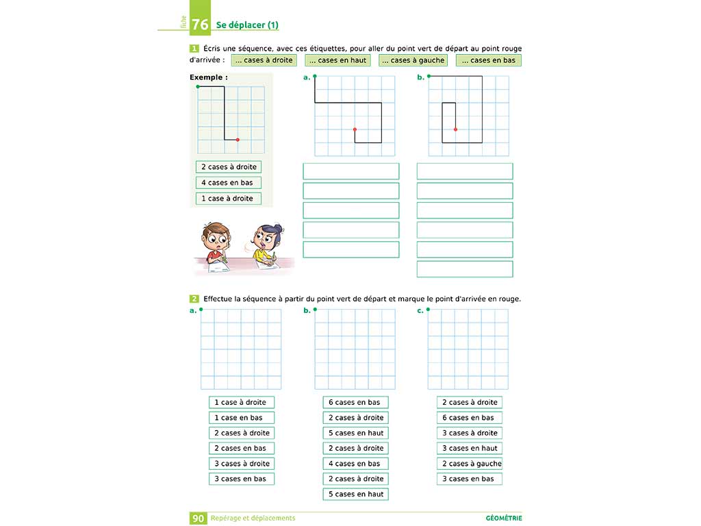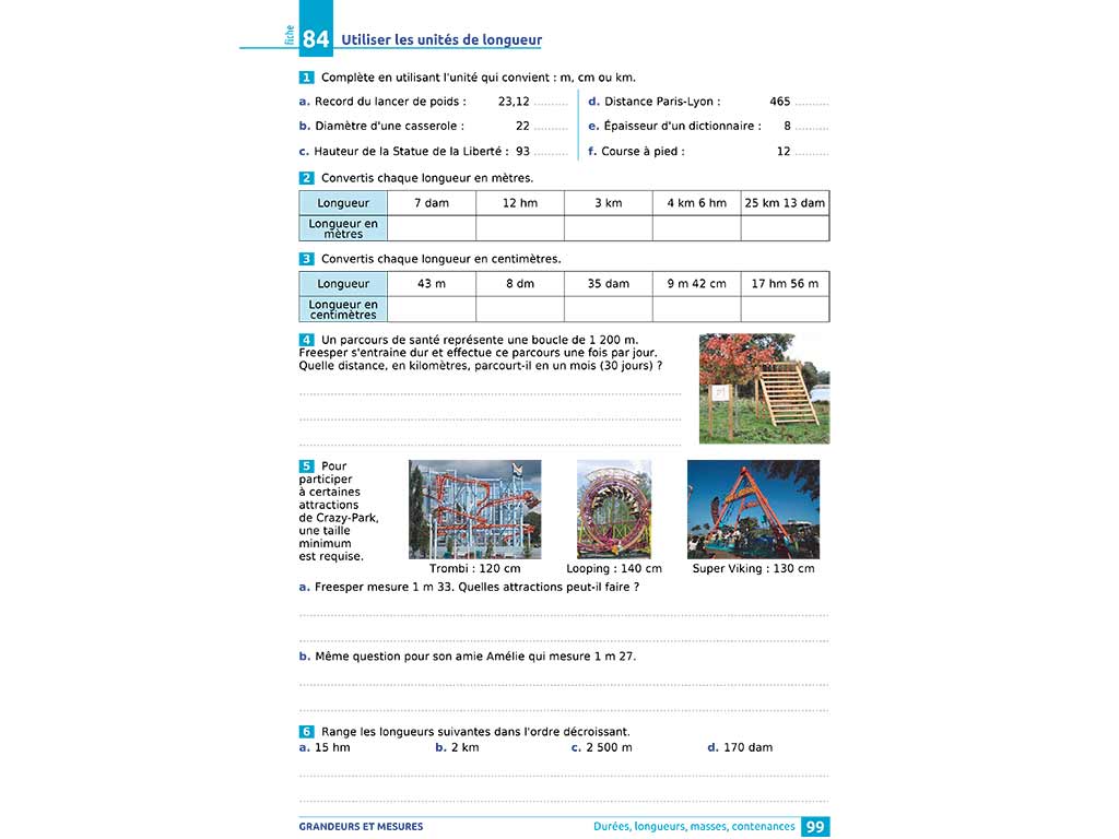 - grand choix d'exercices dans les différents domaines : Nombres et calcul, Grandeurs et mesures, Espace et géométrie