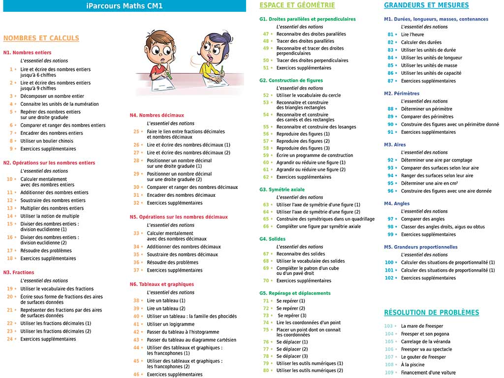 Sommaire du cahier d'exercices iParcours Maths CM1
