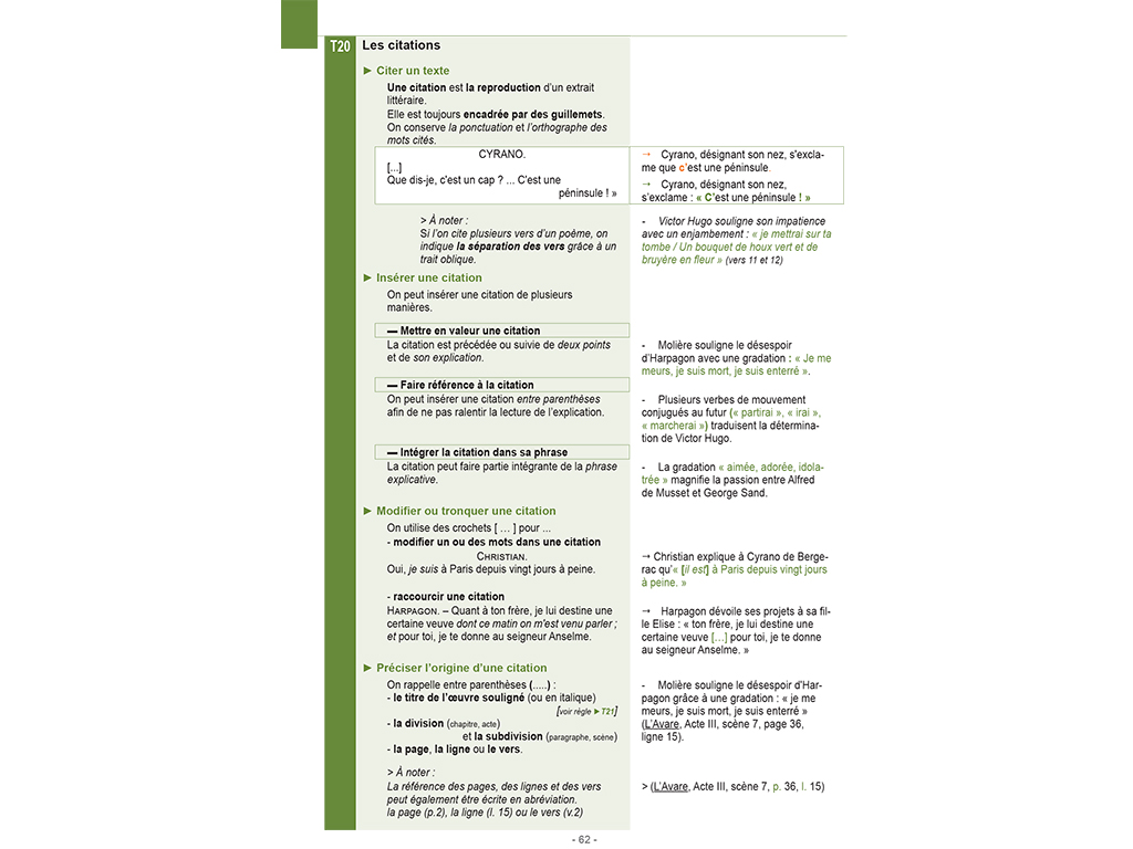 - 25 règles liées au texte : travailler la ponctuation, le texte théâtral, les citations, les figures de style, le texte argumentatif...