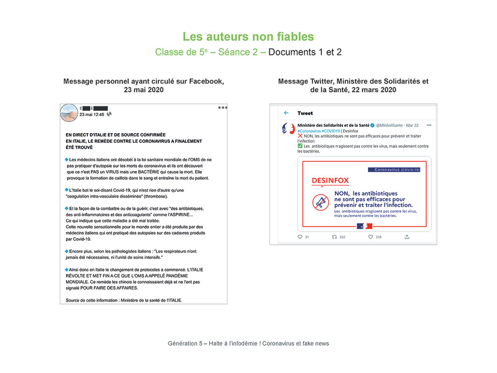 Halte à l'infodémie ! Coronavirus et Fake News, un dossier pédagogique de 24 séances clés en main, pour adopter des gestes barrières face à la désinformation virale.