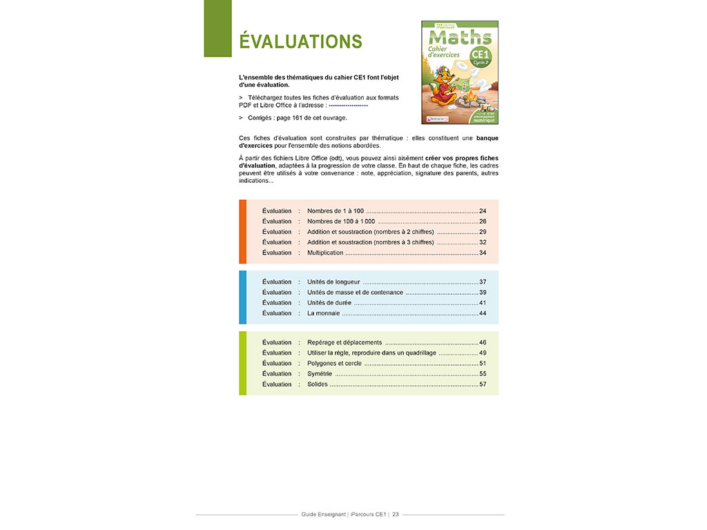 Le Guide de l'enseignant est un complément du cahier d'exercices iParcours Maths CE1 (éd. 2023), conforme aux programmes de 2016 : accompagnement pédagogique et corrigés des exercices.