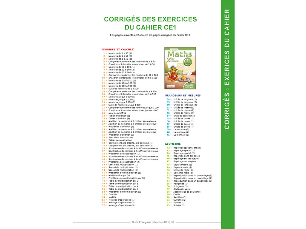 - l’intégralité des corrigés (exercices, évaluations, calcul mental).