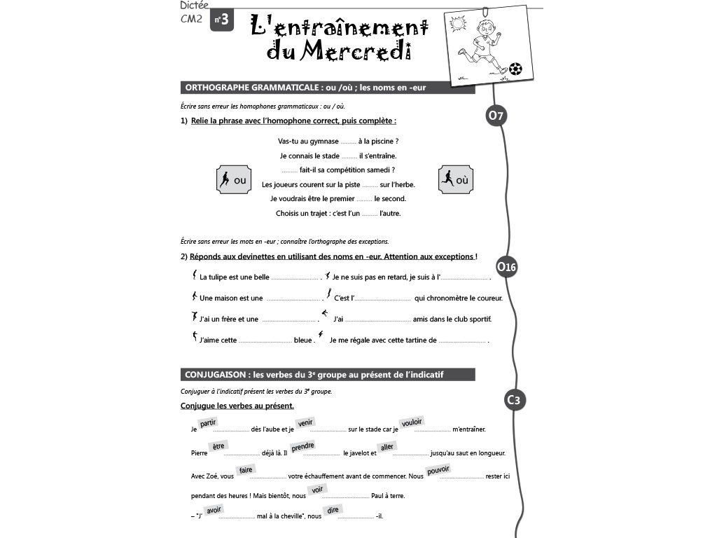 - 25 séquences de préparation à la dictée avec étude des règles d'orthographe et rappels de grammaire et de conjugaison ;