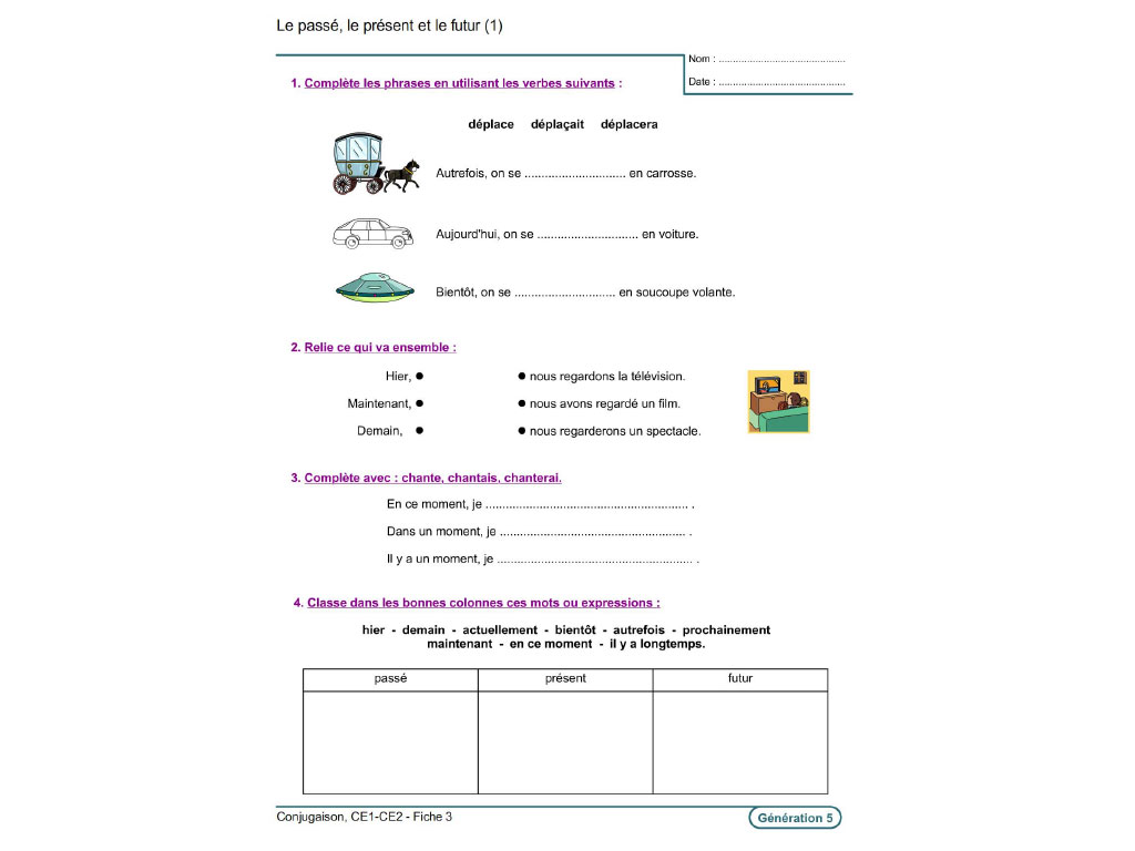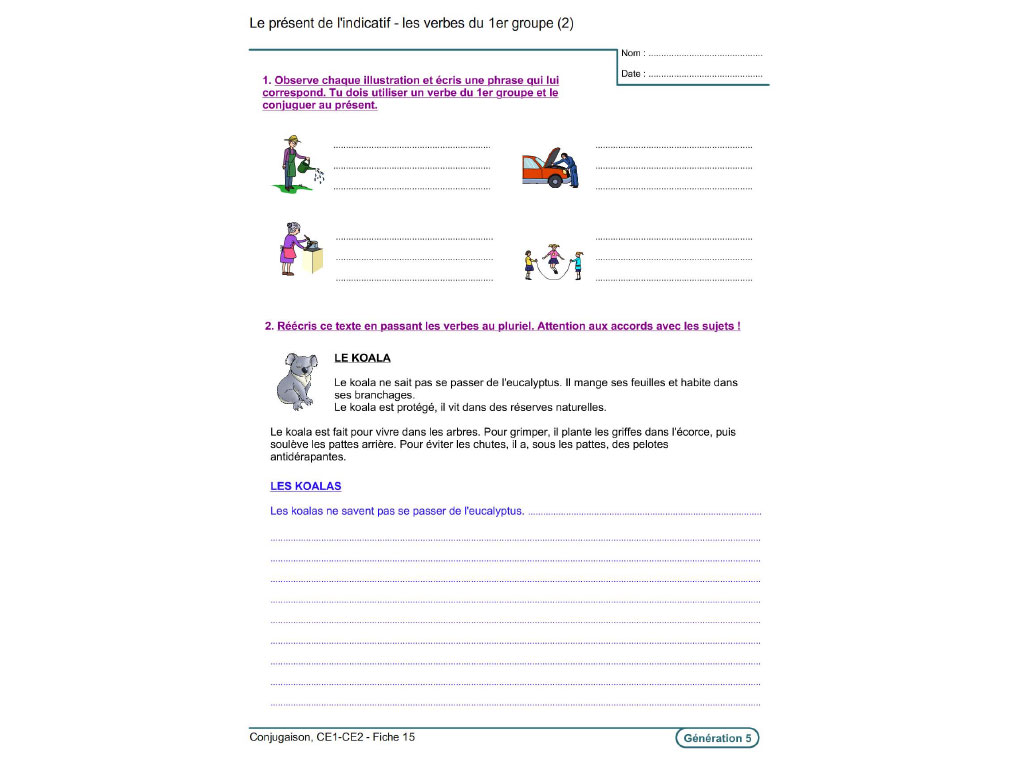 Ce fichier d'exercices pour l'élève de CE1 et CE2 aborde les notions essentielles en conjugaison pour les deux années du cours élémentaire.
