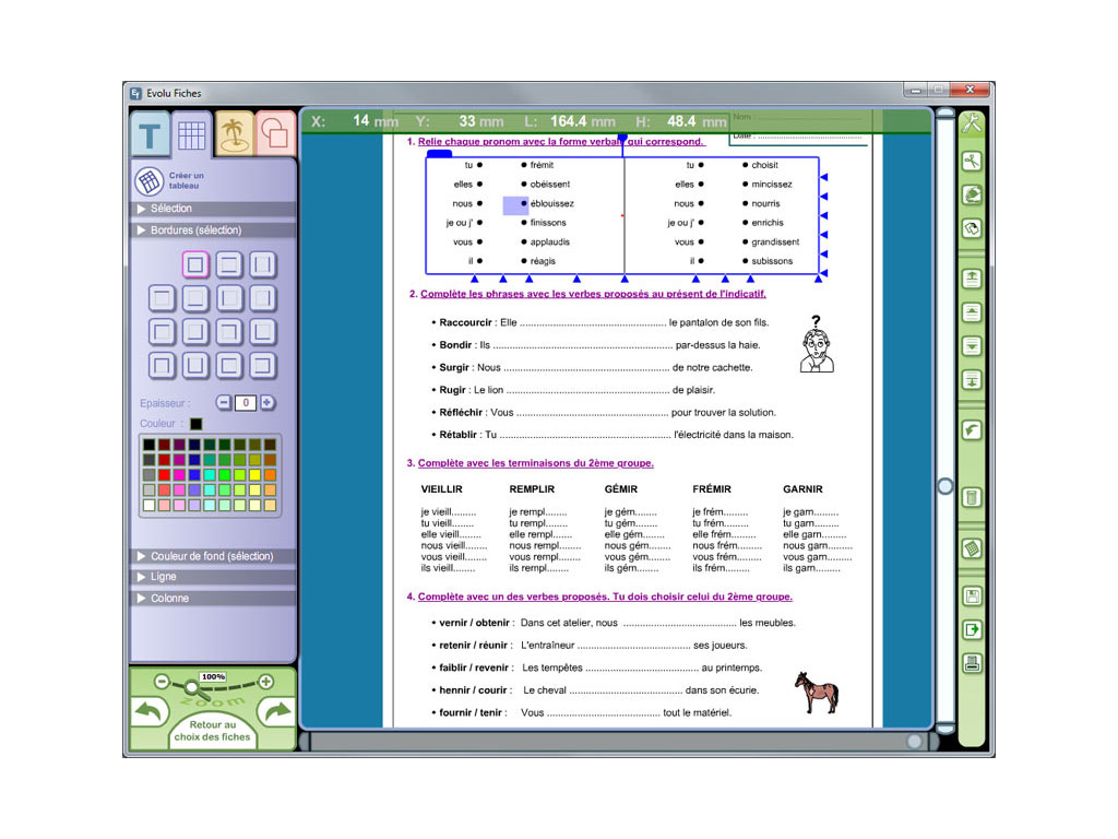 Evolu Fiches - Conjugaison, des fiches d'activités et d'exercices avec logiciel qui abordent les notions essentielles en conjugaison pour les classes de CE1 et CE2.